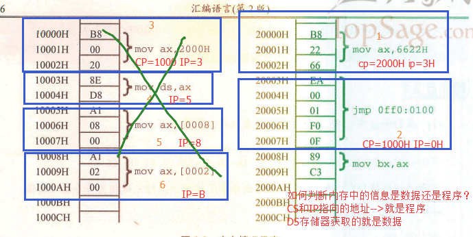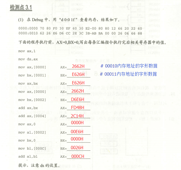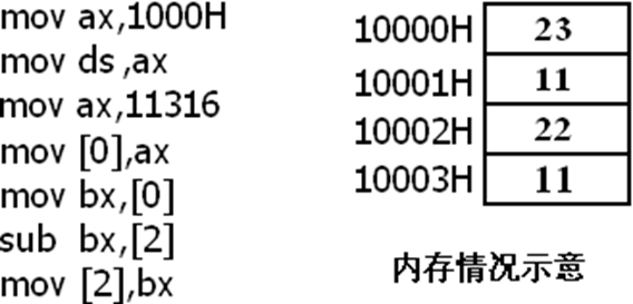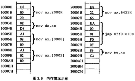 各寄存器的初始值:cs=2000h,ip=0,ds=1000h,ax=0,bx=0;