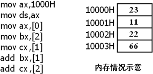 内存中的情况如下图,写出下面指令执行后寄存器ax,bx,cx中的值?
