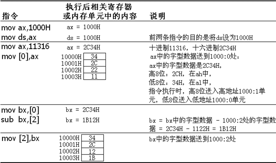 (2)用 mov 指令要访问内存单元,可以在mov指令中只给出单元的偏移地址,此时,段地址默认在ds寄存器中。