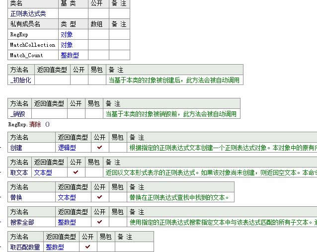 .版本 2 .程序集 正则表达式类 .程序集变量 regexp, 对象 .程序集变量 matchcollection, 对象 .程序集变量 match_count, 整数型 .子程序 _初始化, , , 当基于本类的对象被创建后,此方法会被自动调用 .子程序 _销毁, , , 当基于本类的对象被销毁前,此方法会被自动调用 regexp.清除 () .子程序 创建, 逻辑型, 公开, 根据指定的正则表达式文本创建一个正则表达式对象。本对象中的原有内容将被释放 .参数 正则表达式文本, 文本型, , (.*?) .参数 忽略大小写, 逻辑型, 可空, 可以被省略。默认值为真。本参数指定这个正则表达式在创建成功后进行匹配、搜索、替换时,是否区分大小写。 .参数 匹配多行, 逻辑型, 可空, 可以被省略。默认值为真。如果本成员值为真,字符“^”不仅匹配目标文本的开头,而且匹配目标文本中换行符(字符(10),字符(13)或 #换行符)的后面;字符“$”不仅匹配目标文本的结尾,而且匹配目标文本中换行符的前面。否则字符“^”仅仅匹配目标文本的开头,“$”也仅仅匹配目标文本的结尾。 regexp.清除 () regexp.创建 (“vbscript.regexp”, ) .如果真 (regexp.是否为空 ()) 输出调试文本 (“对象创建失败:vbscript.regexp”) 返回 (假) .如果真结束 .如果真 (是否为空 (忽略大小写)) 忽略大小写 = 真 .如果真结束 .如果真 (是否为空 (匹配多行)) 匹配多行 = 真 .如果真结束 match_count = 0 regexp.写属性 (“ignorecase”, 忽略大小写) regexp.写属性 (“multiline”, 匹配多行) regexp.写属性 (“global”, 真) regexp.写属性 (“pattern”, 正则表达式文本) 返回 (真) .子程序 取文本, 文本型, 公开, 返回以文本形式表示的正则表达式。如果该对象尚未创建,则返回空文本。本命令为高级对象成员命令。 .如果真 (regexp.是否为空 ()) 返回 (“”) .如果真结束 返回 (regexp.读文本属性 (“pattern”, )) .子程序 替换, 文本型, 公开, 替换在正则表达式查找中找到的文本。 .参数 欲被替换的文本, 文本型, , 将要进行文本替换的字符串 .参数 用作替换的文本, 文本型, 可空, 用作替换的文本 返回 (regexp.文本方法 (“replace”, 欲被替换的文本, 用作替换的文本)) .子程序 搜索全部, 整数型, 公开, 使用指定的正则表达式搜索指定文本中与该表达式匹配的所有子文本。返回匹配结果数量 .参数 欲被搜索的文本, 文本型 matchcollection = regexp.对象型方法 (“execute”, 欲被搜索的文本) match_count = matchcollection.读数值属性 (“count”, ) 返回 (match_count) .子程序 取匹配数量, 整数型, 公开 返回 (match_count) .子程序 取匹配文本, 文本型, 公开 .参数 匹配索引, 整数型, , 第几个匹配文本,索引值从1开始 .局部变量 match, 对象 .局部变量 value, 文本型 match = matchcollection.读对象型属性 (“item”, 匹配索引 - 1) value = match.读文本属性 (“value”, ) 返回 (value) .子程序 取子匹配文本, 文本型, 公开 .参数 匹配索引, 整数型, , 第几个匹配文本,索引值从1开始 .参数 子表达式索引, 整数型, , 欲取其值的子表达式。该参数对应与正则表达式中的一个子表达式(以圆括号标记)。索引从1开始。 .局部变量 match, 对象 .局部变量 submatches, 对象 .局部变量 ret, 变体型 match = matchcollection.读对象型属性 (“item”, 匹配索引 - 1) submatches = match.读对象型属性 (“submatches”, ) ret = submatches.读属性 (“item”, 子表达式索引 - 1) 返回 (ret.取文本 ())