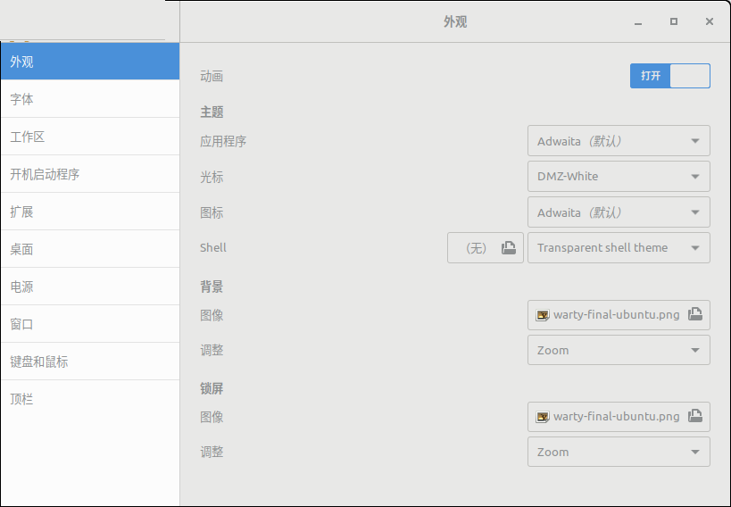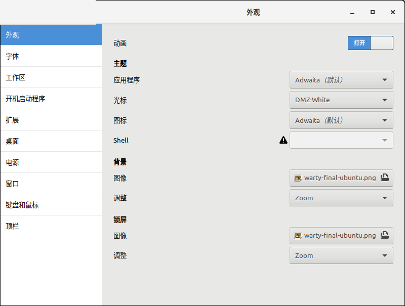 1.打开tweaks实用程序,然后单击“外观”类别以打开相应的面板。